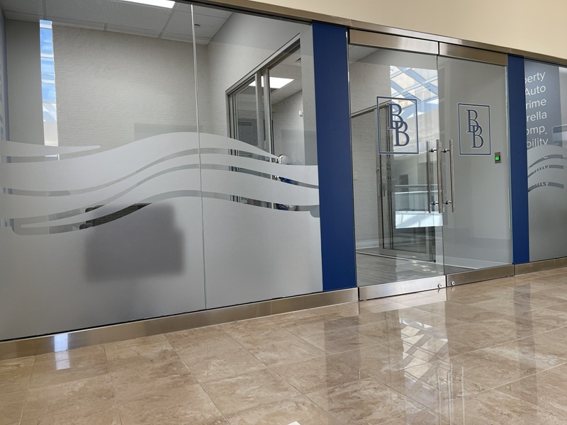 Brown & Brown Insurance, an influential, leading independent insurance brokerage company, was in the process of launching a new office near the Jersey Shore. They faced a unique challenge. The main entryway was entirely glass, providing no privacy for the newly constructed client meeting rooms. The company needed a solution that would provide privacy without sacrificing the open and bright feel. Additionally, they wanted to add elements that inspired their team and leveraged the ambiance of the shore.